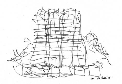 The design is indicative of Gehry’s penchant for billowing curves and is said to have been inspired by a bauhinia flower.