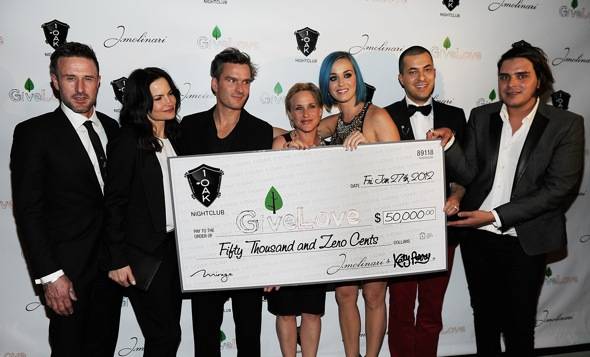 Katy Perry co-hosted the GiveLove charity event with J. Molinari Jewelry designers Markus Molinari and Jason Arasheben. The “Waking Up In Vegas” singer, along with Molinari and Arasheben, presented a check to the charity’s co-founders Patricia Arquette and Rosetta Getty, as well as board-member David Arquette before heading inside the party to join 1 OAK owners Richie Akiva and Scott Sartiano as well as 1 OAK Las Vegas managing partner Eli Pacino.