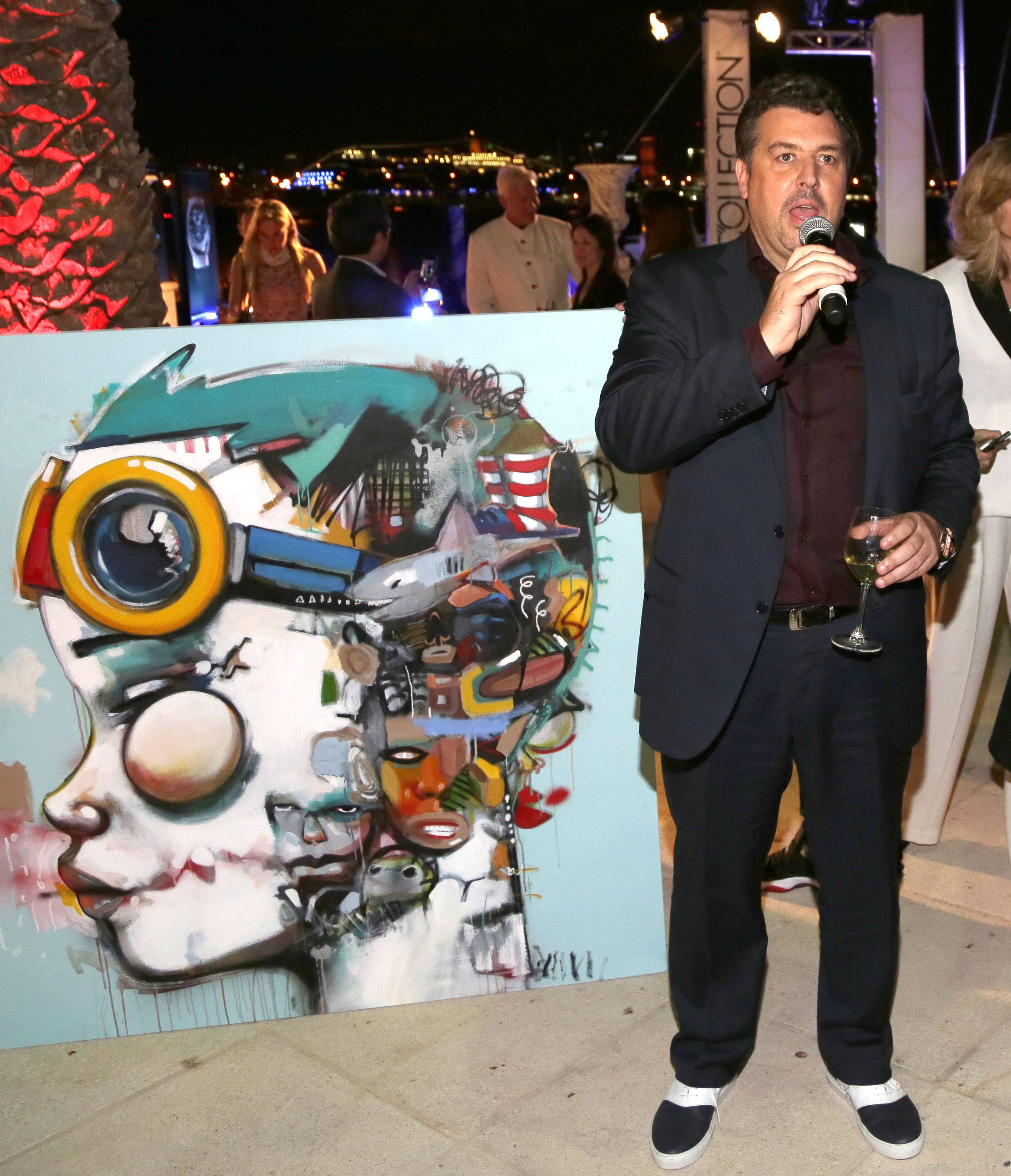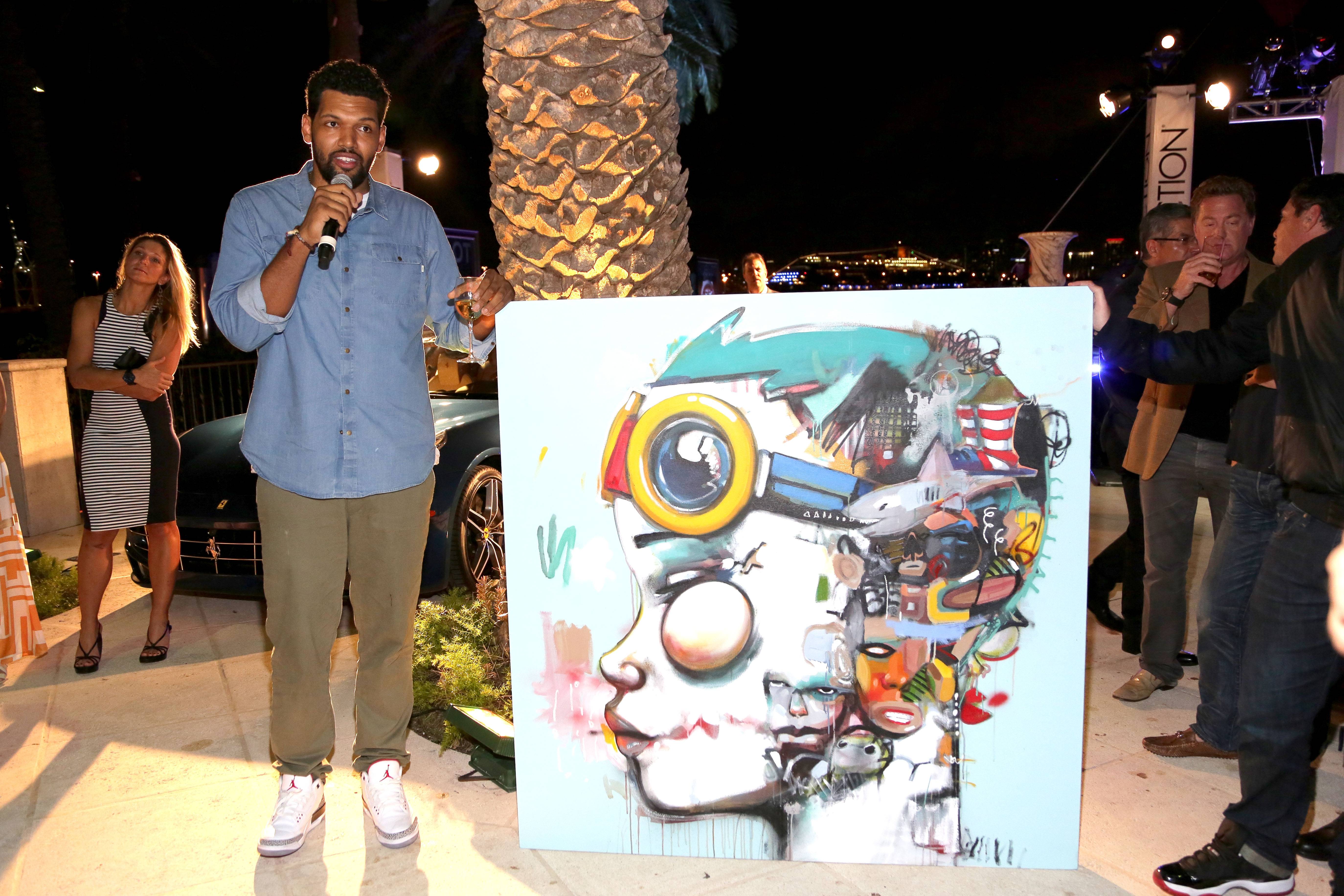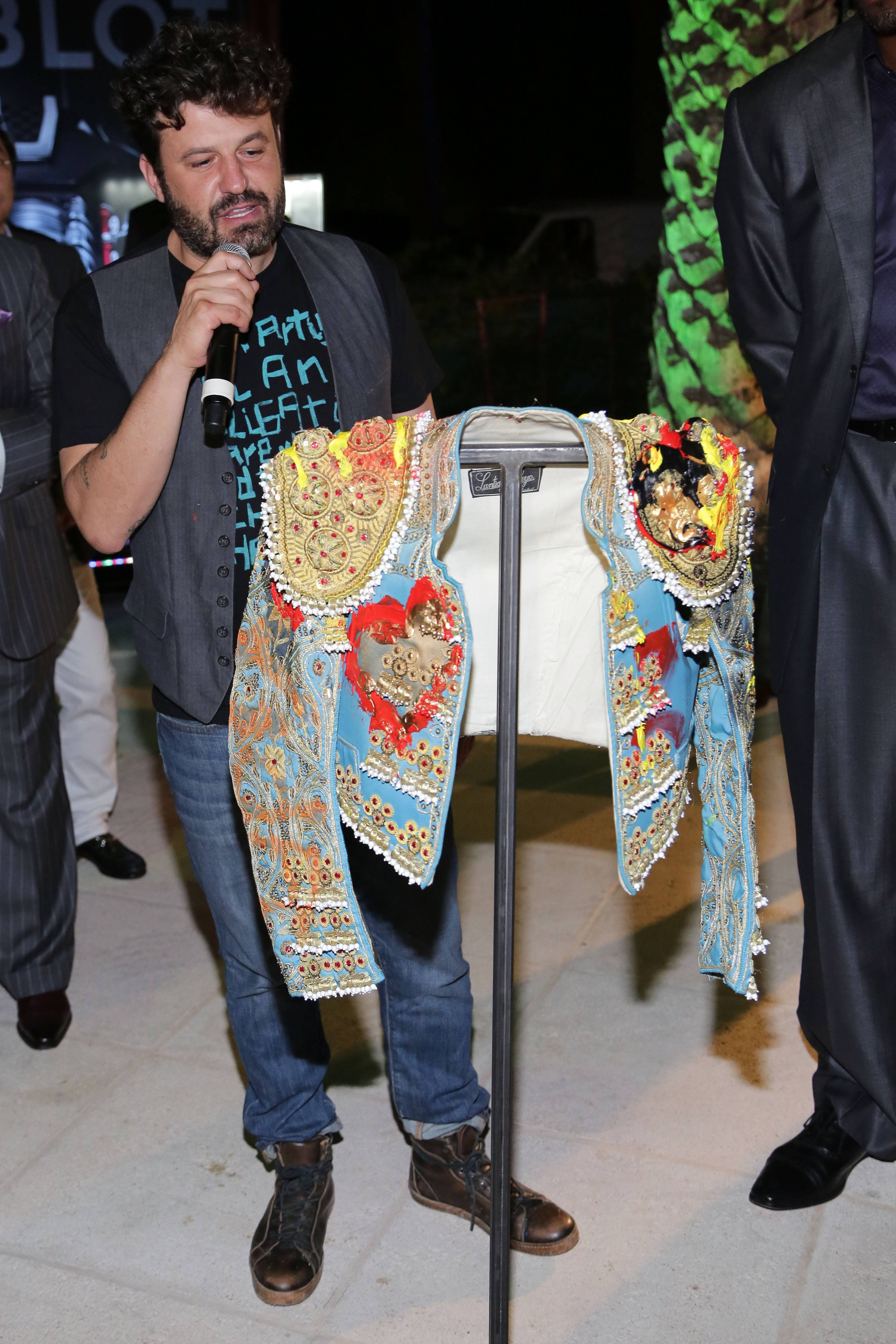 After dinner, Rick de la Croix of Hublot and basketball great Alonzo Mourning hosted an auction of two works of art to benefit his Mourning Family Foundation. “This organization has the power to change the lives of the kids in our community. Those kids are the next generation of Americans, ” said Mourning encouraging VIPs to bid. The first item was a Hebru Brantley tableau called “Shark-like” that sold for $70,000, it’s approximate gallery value. The second was an adorned Domingo Zapata bolero jacket which was valued at $90,000 and went to one very generous bidder. Both artists were on hand personally thank the buyers and tell them about the pieces.
