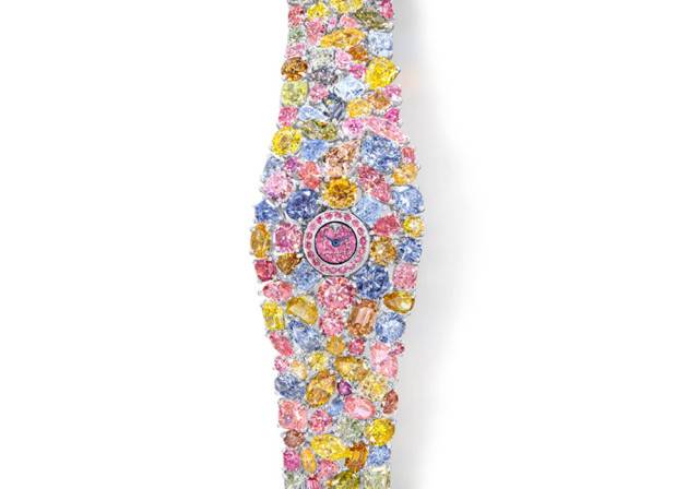 Graff Diamonds unveiled one of the most breathtaking and unique jewelled timepieces we have seen at Baselworld 2014. The Hallucination is a multi-colored diamond timepiece using 110cts of extremely rare, multi-colored diamonds to create an artistic compilation of stones.