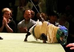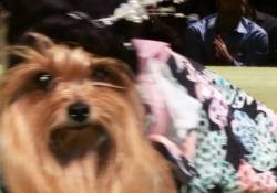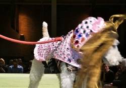 Then it was time for the high-fashion pooches and their chic pet parents to hit the dogwalk. Kismet Levi Lapovsky, an eight-year-old Fox Terrier won the delightful event. In his outfit, he paid homage to his transgender “sister” Maura Pfefferman, appearing on the television show “Transparent.” Kizzy, as he is known, donned golden ash hair extensions, courtesy Randolph & Hein Textiles, and sparkly shoes.