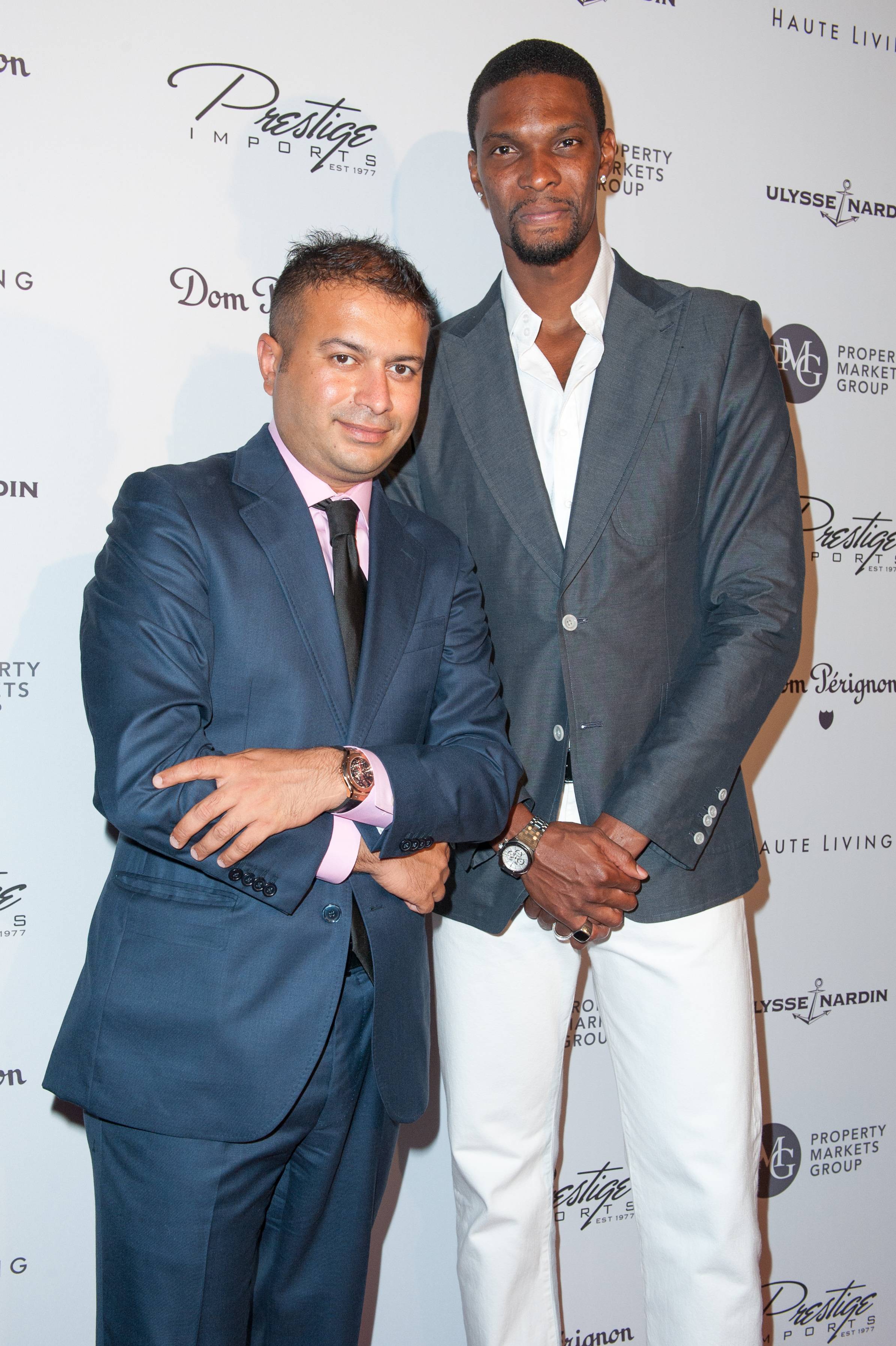 Kamal Hotchandani and Chris Bosh attend Haute Living Haute 100 Dinner presented by Dom Perignon at Tamarina at Brickell World Plaza on May 6, 2015 in Miami, Florida. (Photo by Sergi Alexander/Getty Images for Haute Living)