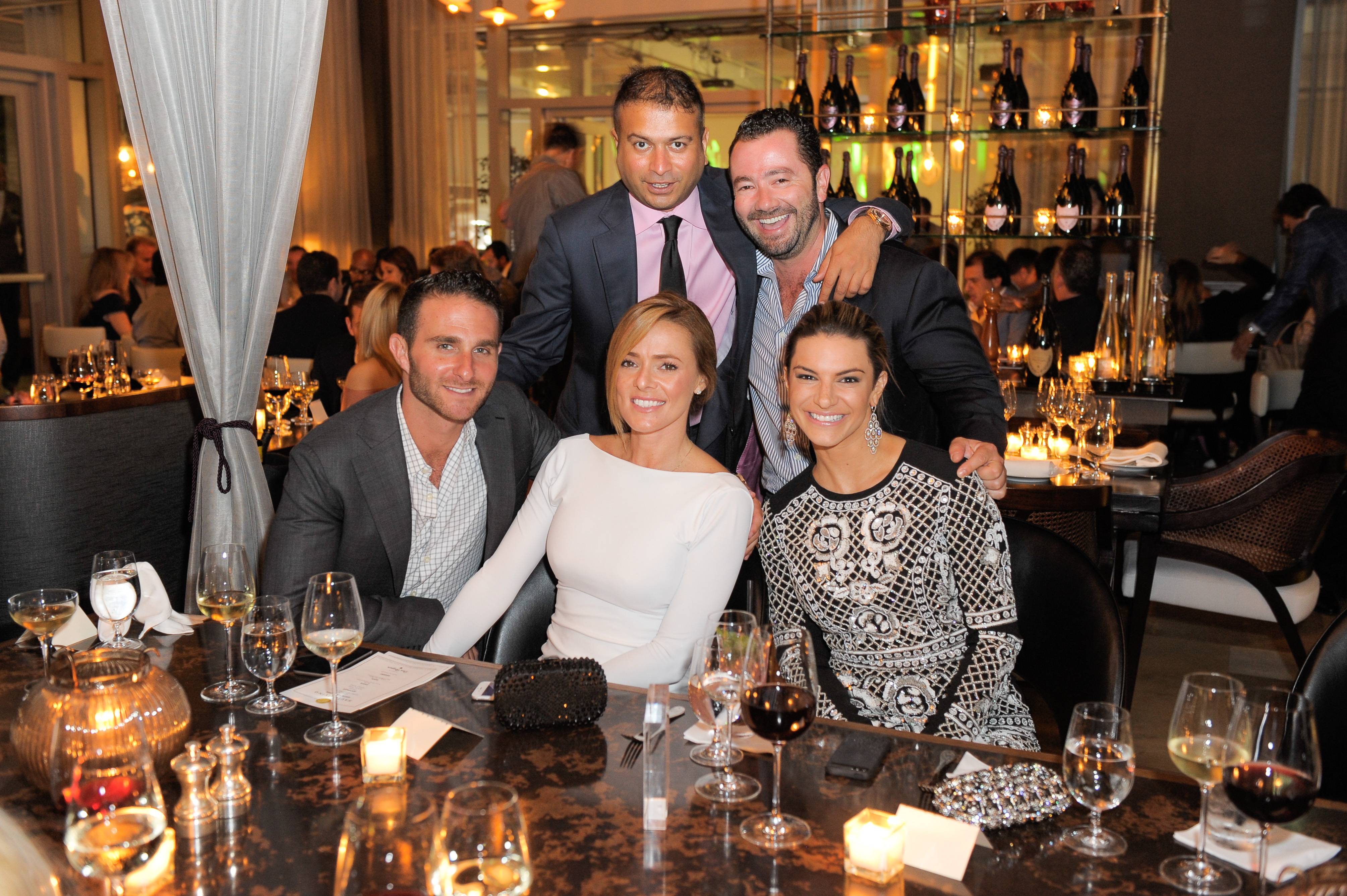Kamal Hotchandani (top left), Brett David (bottom left), Catarina Padilha and Tory Thomas attend Haute Living Haute 100 Dinner presented by Dom Perignon at Tamarina at Brickell World Plaza on May 6, 2015 in Miami, Florida. (Photo by Sergi Alexander/Getty Images for Haute Living)