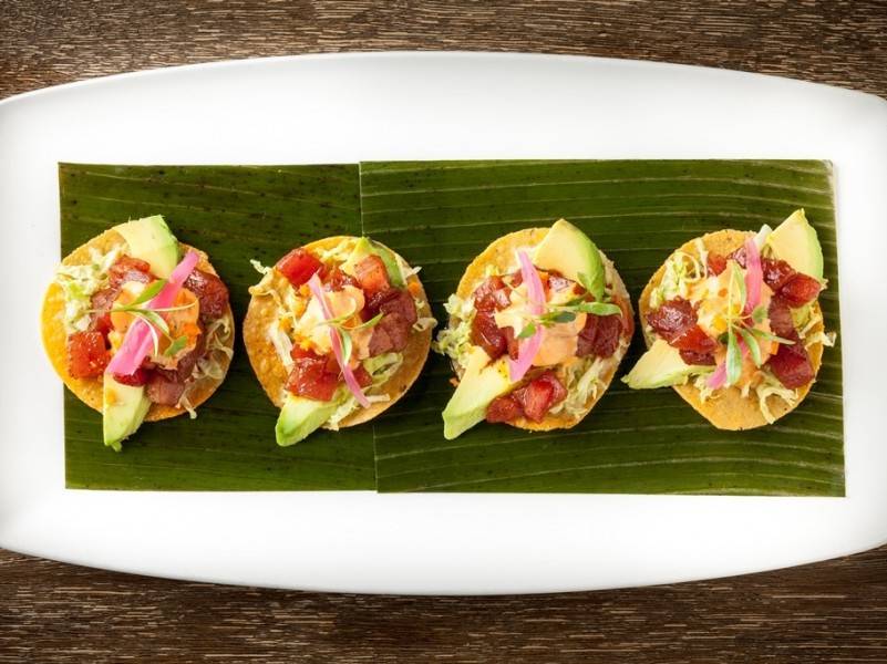 The fare, for those who are familiar with Bayless’ signature cuisine, can best be described as “Mexi-Cali” with a focus on prime steaks and seafood. The Santa Monica location is helmed by Executive Chef Keith Stich, who trained under and works with Top Chef star Bayless. Stitch whips up a menu of thoughtfully prepared and and saucily presented dishes like the Surf ‘n’ Turf Seafood Tablita, an elaborate dish featuring a prime, 32 ounce Tomahawk Ribeye Chop and a Jumbo 1 ½ lb. Maine Lobster fileted and served tableside with a selection of authentic Mexican inspired accompaniments including corn and flour tortillas, pico de gallo, guacamole, vegetable escabeche, red rice, and black beans, and a Goat Cheese Tamale: a goat cheese and and masa tamale filled with Laura Chenel Goat Cheese and roasted poblano chiles.