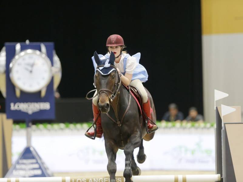 The Charity Pro-Am Style & Competition was a unique team class composed of one professional rider and one amateur rider, riding for charity. Each of the eight teams dressed up in costumes of their choice as they rode to a music selection complimenting their chosen theme. The team with the best style was decided by a celebrity jury composed of James Bond girl Denise Richards, actress Perrey Reeves from Entourage, and KTLA anchor Sam Rubin. Each team was judged on the number of penalties over the fences, the team’s style and elegance, as well as the horse’s style.