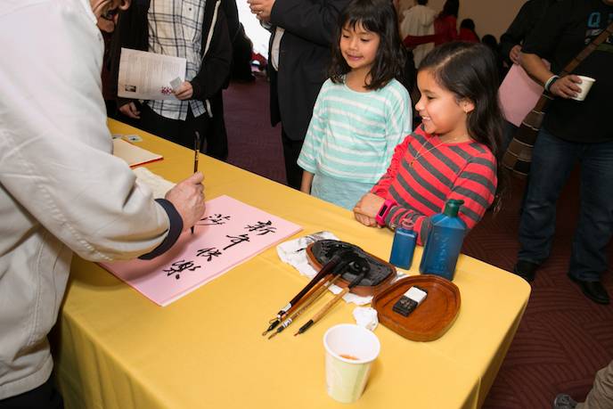 A smiling, giant-sized Buddha perched outside Symphony Hall’s doors set the tone as attendees, many of them families with children donned in traditional Chinese dress, entered the lobby. Once inside, they were transported into a Chinese street fair, complete with lion dancers, acrobats, live music performed on traditional Chinese instruments, face painting, demonstrations of Chinese calligraphy, tea service and complimentary modern tasty twists on Chinese appetizers from Yank Sing, M.Y. China, Koh Samui and the Monkey and Eatz Catering . As befitting the New Year, mounds of the perennial favorite, fortune cookies, proffered advice. (Mine read: “Be generous and it will be returned in kind.” Sounds good to me!)