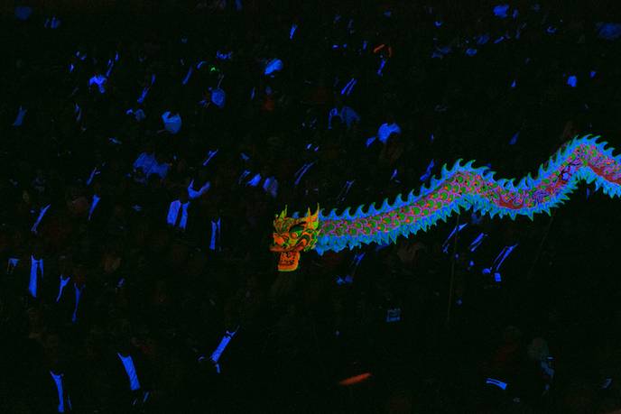 This was no ordinary concert or simply a symphonic take on traditional Chinese music. Instead, this was a balanced, moving, surprising and at times playful musical program. It opened with a 50 ft. dragon dramatically undulating through the aisles under black light. One of the musical highlights arrived in the first half with “Water Concerto,” by Tan Dun, the experimental composer best known outside the classical world for his Academy Award-winning score to the film, “Crouching Tiger, Hidden Dragon.”