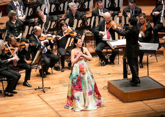 The second half’s “Petals’ Burial (Dai Yu’s Aria),” sung by Pureum Jo, unveiled an emotional preview of “Dream of the Red Chamber,” by Bright Sheng. The opera debuts to the world in September, 2016 at the San Franisco Opera, which commissioned the work. The concert ended with a traditional Chinese singalong, extending best wishes for the New Year.