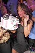 The superstar arrived at the club with six of her friends styled in a sleek black dress and got into the party spirit with a rhinestone birthday crown. The ladies were seated at a private table where Anahí was surprised with a personalized cake topped with a microphone and glowing candles. Anahí continued the celebration into the early hours of the morning, dancing to the mixed tracks of DJ Dave Fogg and posing for picture with her friends.