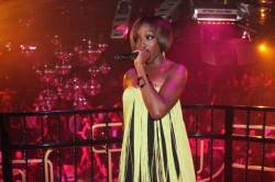 Still on a high from her award, Estelle enjoyed dinner at Yellowtail before performing at The Bank after. Estelle and her group hung at a table and enjoyed Grey Goose Cherry Noir cocktails and Jack Daniels Honey. Then it was show time.