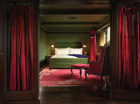 The hotel displays a chic Bohemian and unconventional style with great pieces of furniture, art, and an extraordinary use of color. The lobby will showcase an ever changing set of 20th century masterpieces from artists such as Andy Warhol and Jean Michel Basquiat. Emphasizing the hotel’s commitment to service, each guest is provided with a personal assistant to cater to their every wish. The Rose Bar and Jade Bar at the Gramercy Park Hotel offer the same type of edgy sophistication found throughout the hotel. Guests have the added perk of ordering room service from the “Best Of” selection of signature dishes from New York’s most celebrated chefs including Mario Batali of Babbo, Riad Nasr and Lee Hanson of Balthazar, and Nobuyuki Matsuhisa of Nobu.