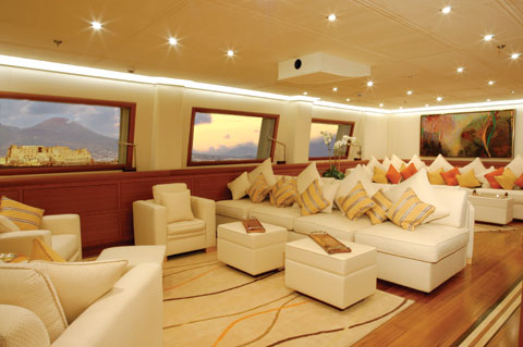 Fox Inc. CEO Barry Diller owns one of the world’s most admired sailing yachts. The 305-foot-long Eos, built by Lürssen, bears the distinction of being the largest overall. With the same ingenuity that he brought to so many of his successful business ventures—like Cheers, The Simpsons, and Raiders of the Lost Ark—this media mogul took a front seat in designing Eos, specifying the desired three-masted architecture and sleek profile. With Diane von Furstenberg as his wife, it is not a surprise that Diller takes design seriously. For this undertaking, Diller chose François Catroux, the Parisian decorator nonpareil who has built design interiors for some of the most recognizable names in France and America. Incidentally, this appointment brought the fashion connection full circle; Catroux is the longtime husband of Betty Catroux, aka the late Yves Saint-Laurent’s former muse.