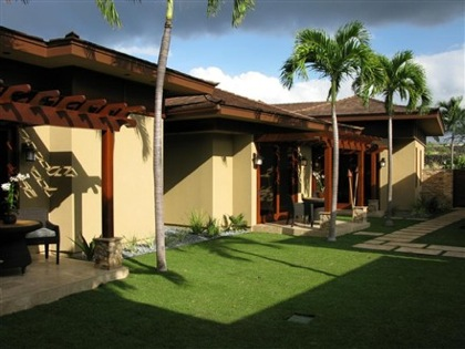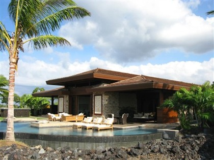 The six-bedroom home is divided between the main house and four additional bungalows which contain one bedroom each. The main building is superbly located with a view over the infinity pool which itself overlooks the fourth hole of the Ke’olu golf course. In true superstar fashion, Cher also had a detached media room constructed on the property.