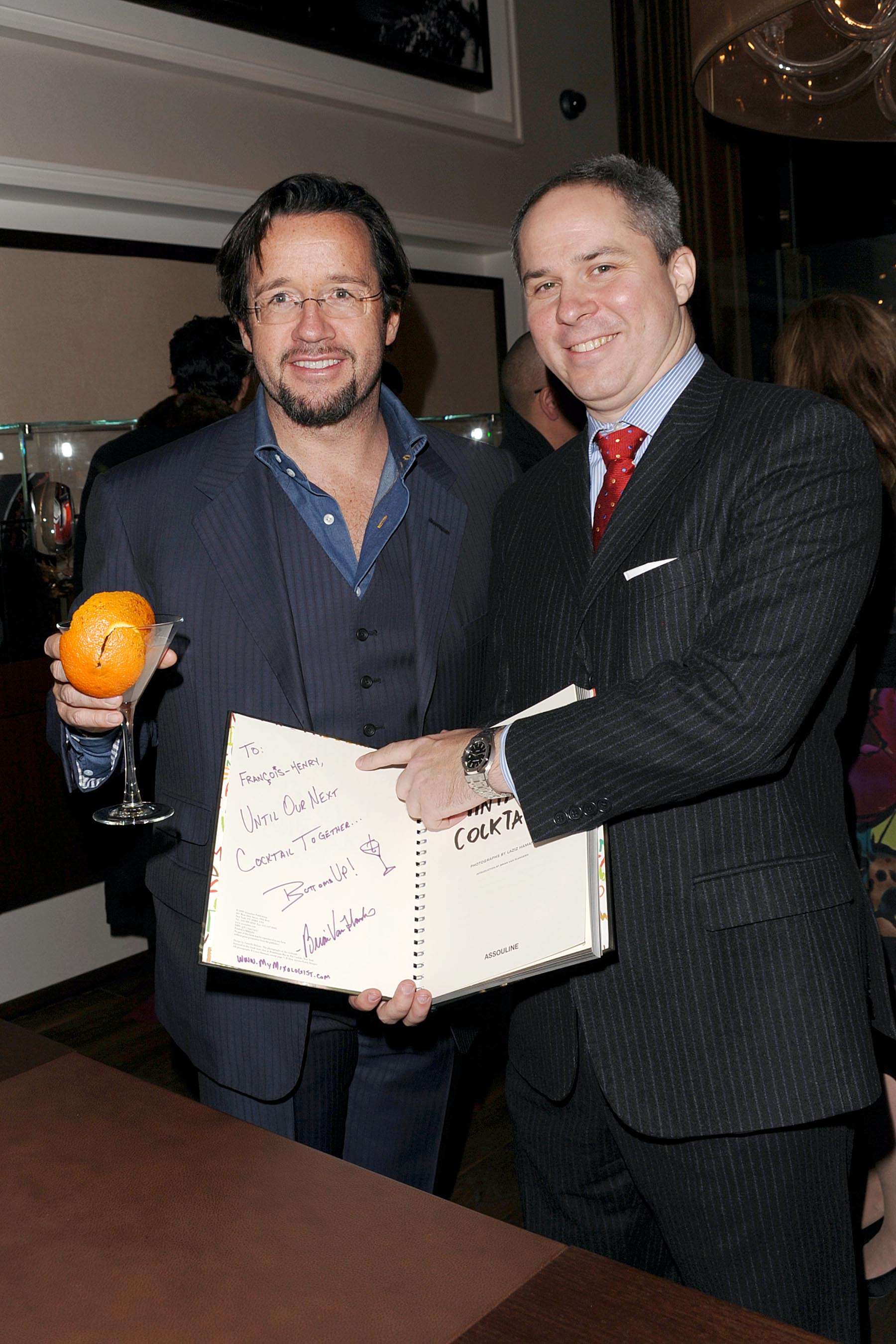 The spotlight of the evening shown brightly on Michelin three-star mixologist Brian Van Flandern, who recently authored the artistically photographed book, Vintage Cocktails, by Assouline Press. In addition to the three-star recognition, Van Flandern has also earned nods from celebrichefs like Thomas Keller, Mario Batali, and Michel Richard. Publisher Prosper Assouline, who has worked with such revered fashion houses as Chanel and Ralph Lauren, as well as in the publishing world with the likes of Lee Radziwill, stopped by to extend holiday wishes, alongside his wife and publishing partner, Martine.