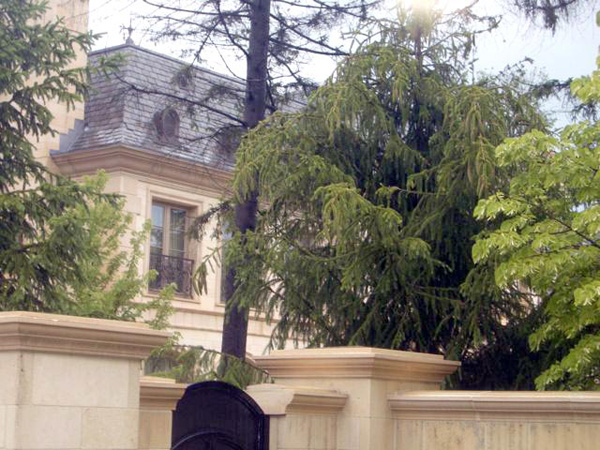 The 27,000 square-foot mansion includes six rooms, six baths, a two-story rotunda and Tiffany dome, a grand entrance, and sits on 2.04 acres. Completed in 2008, the two-story limestone mansion was designed by Los Angeles architect Richard Landry.