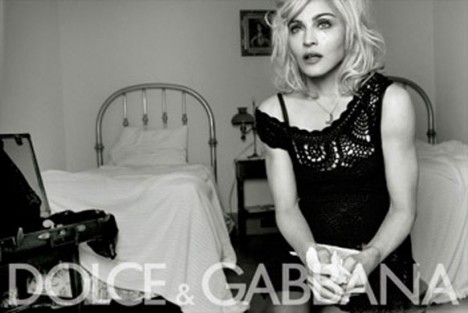 Dolce & Gabbana‘s newest Spring/Summer 2010 campaign starring a busty Madonna has been released. In the ads, the queen of reinvention plays an Italian housewife. “There are many Italian symbols in the images, ones the whole world recognizes and identifies with,” says Gabbana, as he points to the cross Madge is wearing around her neck, as well as the brass bed, which is a norm in Sicilian homes. They also wanted to use food imagery for the new campaign. “It’s healthy and sensual,” says Gabbana. “They say there’s a connection between food and sex.”