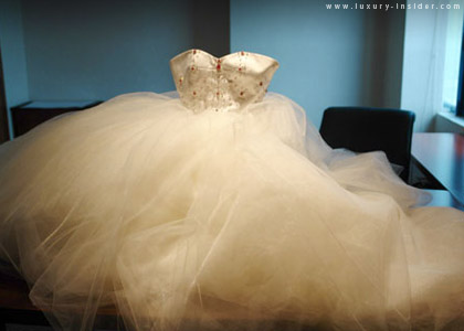At the mid-point of 2009 we saw the world’s most expensive espresso machine and the world’s most expensive magazine ($6,500 per issue!), but Vietnam based designer Huy Vo showcased the winner – a $117,000 bridal gown decked out in 222 diamonds and 100 red rubies. The gown took Vo 40 days to complete and features a gemstone flower made of 22 big rubies and 8 big diamonds and a big waterdrop-shaped ruby to symbolize love.