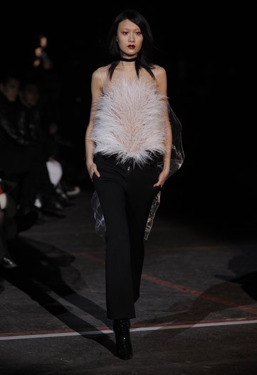 Even in Paris, the collections scaled back to sportswear. Givenchy’s Riccardo Tisci initially seemed to mimic this notion as he opened show with a series of spare, boxy coats in neutrals and black, but he soon moved onto strong and confident pieces, making this collection into sexy sportif. Moving between structured panels on dresses and some fluffed wispy feathers gave the entire line a certain ‘je ne sais quoi’ that was intoxicating.