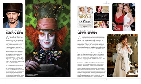 He’s quite the box-office draw; films starring Depp have grossed billions worldwide. He’s been nominated for a slew of awards, including three “Best Actor” nominations from the Academy Awards. This season, audiences are lining up to see Depp’s portrayal of the Mad Hatter in Tim Burton’s adaptation of fairytale classic Alice in Wonderland, which is one of the most anticipated releases of 2010.