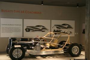 At least one major player in the collector car business has embraced the museum’s mission. Bugatti Automobiles S.A.S., the VW-owned company that has rekindled the Bugatti legend, has taken the unusual step of lending its four most important prototypes to the museum for display. The EB118, EB218, 18.3 Chiron, and Veyron prototype showcase the company’s evolution from the Italian produced EB110 of the early 90s to Bugatti’s current production Veyron supercar.