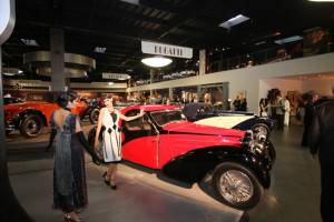 “The center of Art Deco happened in Paris in the late 20s and 30s and it impacted sculpture and furnishings, graphics, vases and crystal, and haute couture,” explains Mullin. “It was the birth of a way to think about design, and the cars were certainly the driving centerpiece of all of that. The [original] concours d’elegance wasn’t about going to look at a car, it was to look at an entire package of a beautiful woman in a beautiful dress with her Russian Wolfhound standing by her side, with her luggage, her hat, and a car. Sometimes the car was painted to match the woman’s dress and sometimes the dress was made by a couture house to match the car, but when you went to a concours d’elegance, it wasn’t to look at cars, it was to look at a presentation.” Echoing this notion, Mullin offered guests just such a presentation at the museum’s inaugural event. Models in period couture dresses strolled amongst the million dollar cars, contributing to the multi-faceted cultural tapestry that Mullin seeks to re-create.