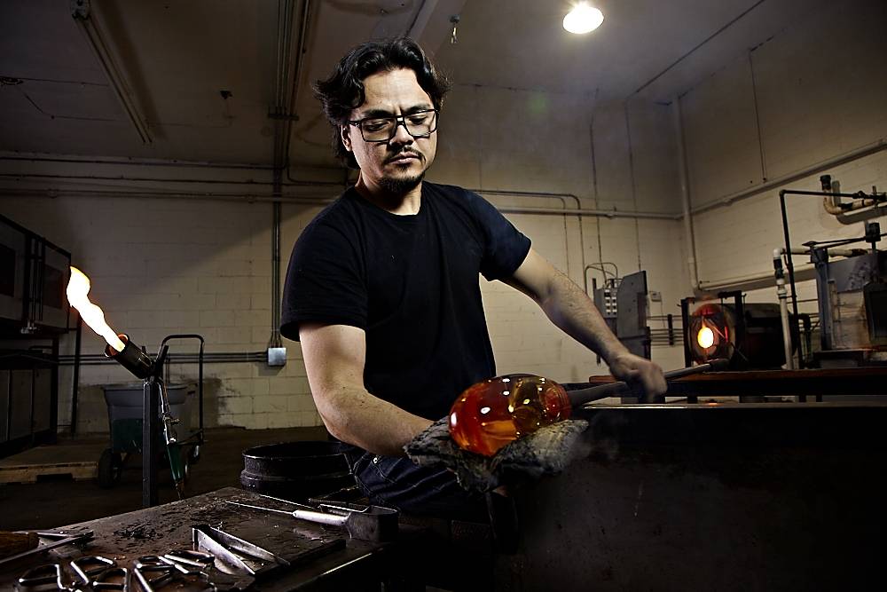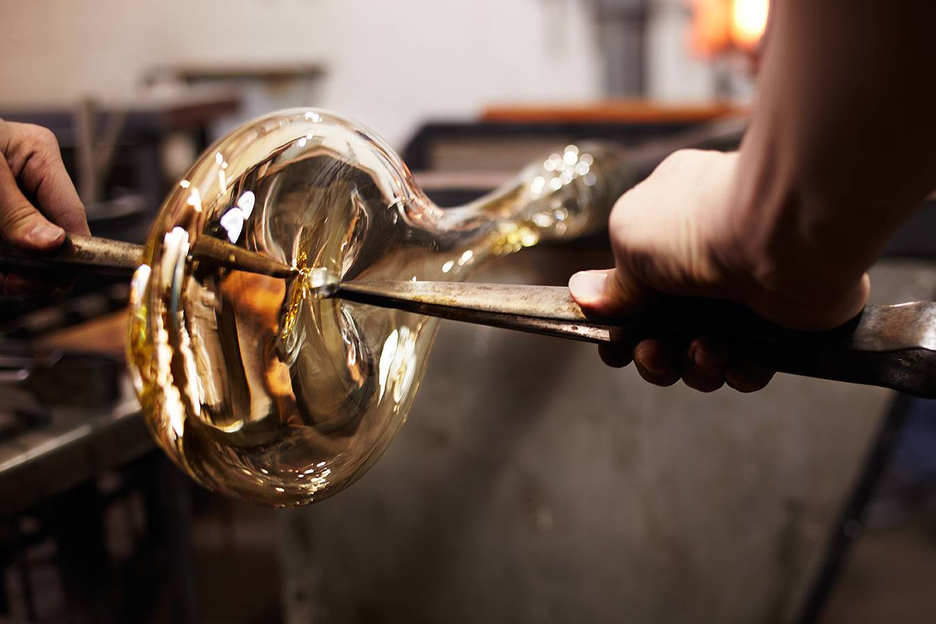 Each decanter is mouth-blown and hand-polished in Pomp’s studio.