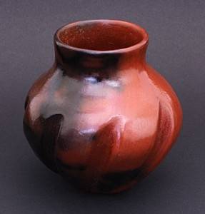Standing 4 1/2 inches tall and 13 1/2 inches around, this Navajo vase by Melissa Johnson would look equally as lovely on a bookshelf, mantle, or bedside table as it would as a centerpiece in one’s breakfast nook, filled with fresh-cut flowers. As is tradition with Navajo pottery, a pinon pitch has been applied to give it a striking luster.