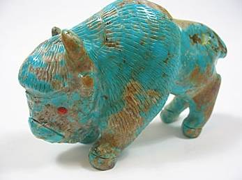 The enchanting Kingman turquoise Zuni buffalo carving by Stuart Lasiloo would make a sweet birthday present or other token of appreciation for a dear friend. As part of their traditions, the Zuni people use carved figures as symbols, power objects, and mediators.