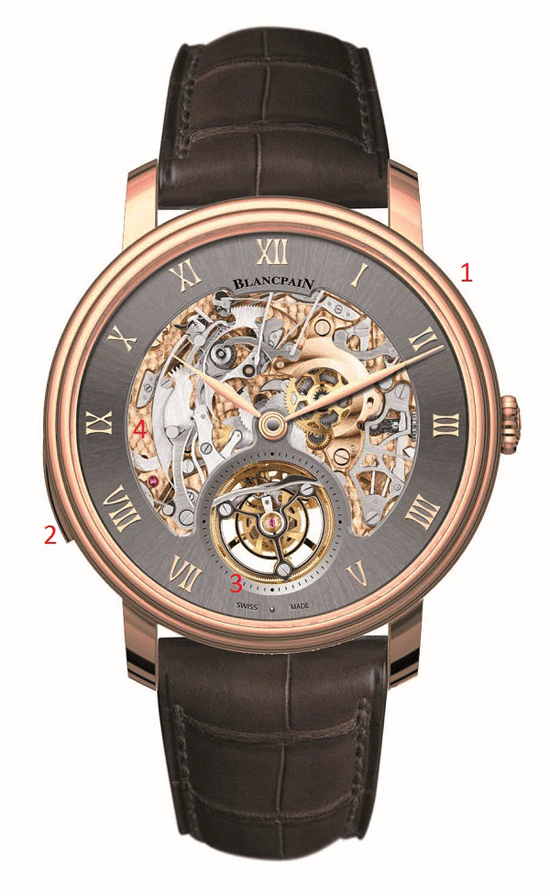 - Skeletonized and open-worked dial revealing Blancpain movement