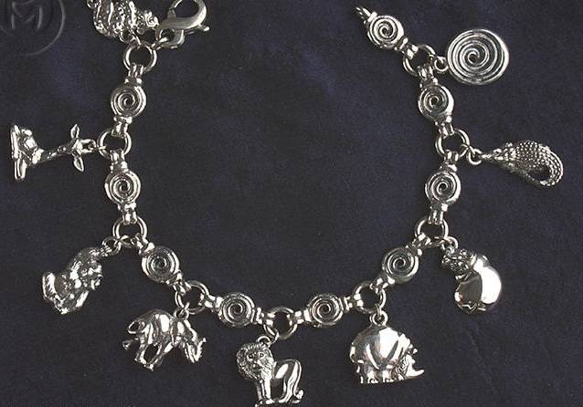Patrick Mavros was born in Matabeleland, the wild western province of Zimbabwe. He grew up with a great affinity for wildlife and tried a variety of trades before he became a sculptor-by chance. He began his business in 1979 after he made a pair of silver ivory earrings for his wife that were admired by many of her friends. Since that moment he began his work creating unusual silver sculptures such as a pair of silver crocodile belt buckles, sterling silver elephant hair bangles, and elephant and tortoise ashtrays.