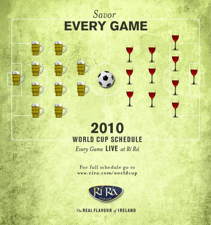 This midtown upscale Irish Pub means business. They will be showing live World Cup games all month on crystal clear screens. They will even be opening as early as 7 a.m. to accommodate diehard fans. Along with their already impressive selection of beer, RiRa will offer beers from many of the participating countries around the world. Stop into this spot during your lunch break to catch a bit of a game and take advantage of the RiRa lunch soccer specials. Their Website has a complete schedule of all the matches. Now that is dedication.