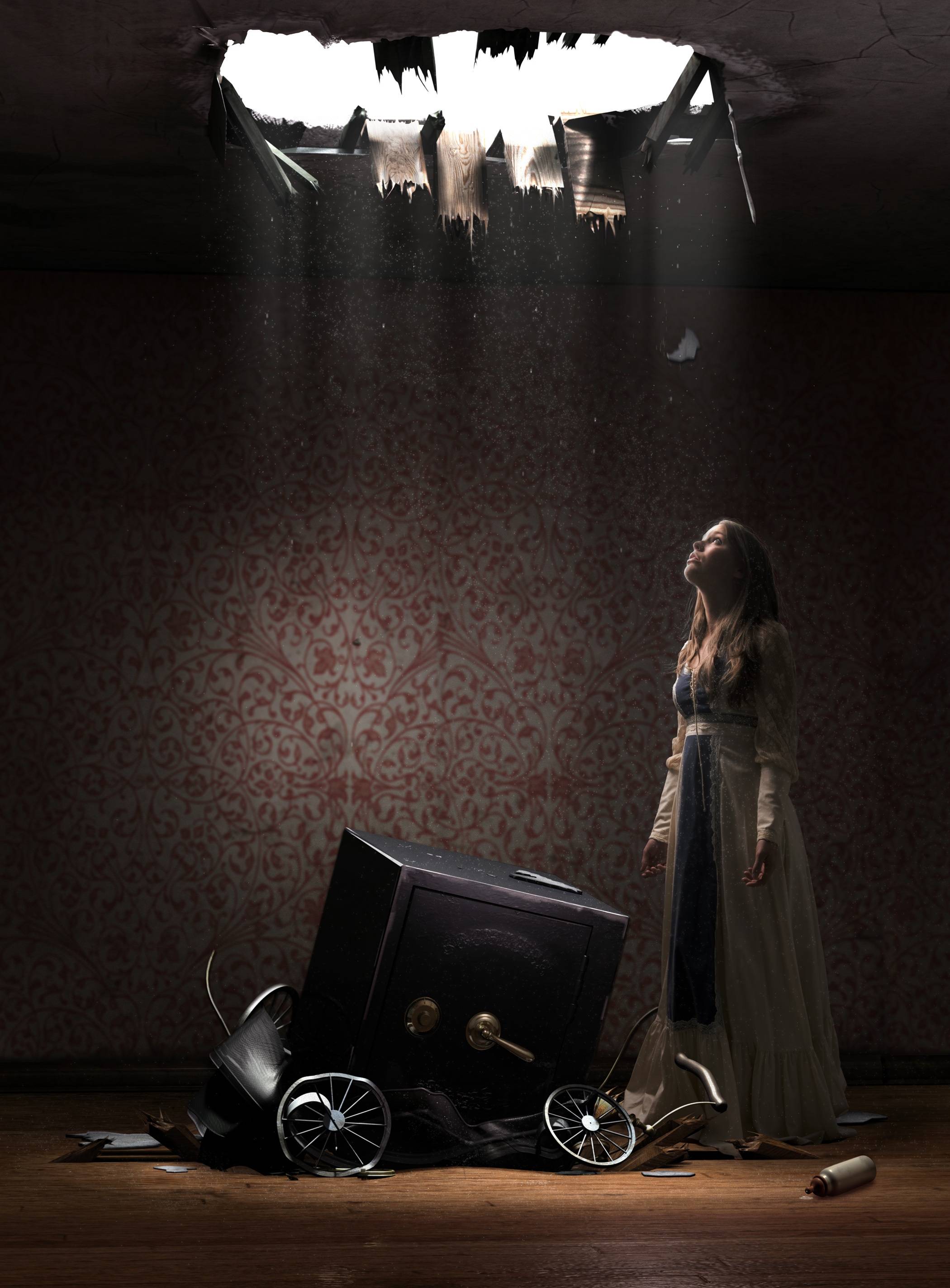 Similar to the other works in the exhibition, Jamie Baldridge distorts and rearranges found reality to create mesmerizing and surreal juxtapositions as seen in The Socrates Safe Co. (2009).