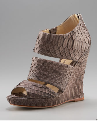 Python Triple-Strap Wedge, $795.00. Available online at Neiman Marcus.