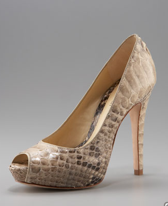 Python Peep-Toe Pump, $645.00, Available online at Neiman Marcus.