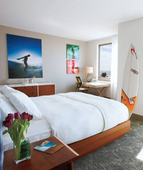 For those travelers that think Huntington Beach hotels are sandy surf shacks, think again. Opened in 2009, Shorebreak is the first full-service, luxury hotel on the waterfront in Huntington Beach and the only hotel located in downtown. Drawing its inspiration from the laid-back surf culture, the hotel pays homage to the sport without being kitschy. Rest assured, guests won’t find Tiki masks around every corner. They will discover an eclectic mix of contemporary furnishings with iconic surf photography and watercolor beach scenes. The youthful, energetic interior vibe carries over to the cuisine of Zimzala restaurant, which is located inside the hotel and features traditional American cuisine with a modern twist.
