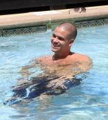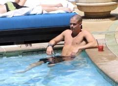 On Saturday, Salling was ready for some fun in the sun so he and his buddies headed to Azure Luxury Pool at the Palazzo where they hung out in their private VIP cabana. The group had lunch and Sailing dined on Wolfgang Puck’s pizza, burgers and French fries. It was a hot one in Vegas so water was his drink of choice along with one of Azure’s specialty drinks the Ciroc Coco Mojito. Later Sailing and his friends took a dip in the pool to cool off. The group plans to head to Lagasse’s Stadium tonight to watch the UFC 116 fight.