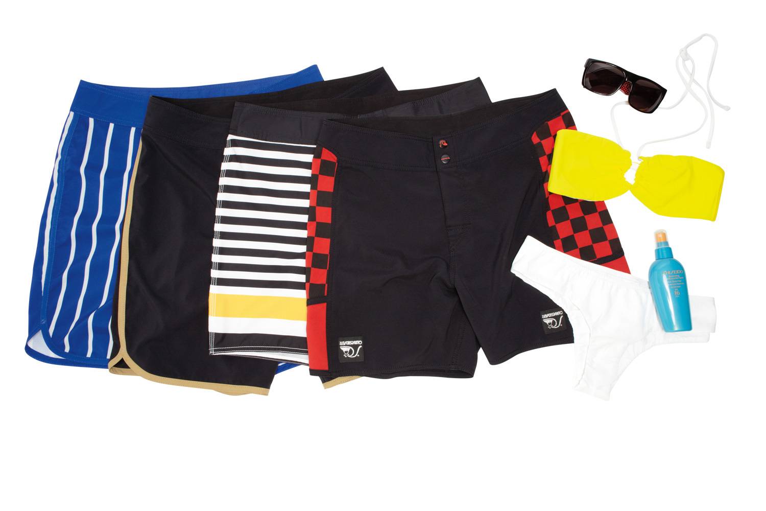 Also available are the Standard Bikini by Quiksilver, $88, a gorgeous custom yellow-and-white convertible bikini; the Standard Sunglasses by Quiksilver, $88, sleek unisex shades complete with Quiksilver signature black-and-red checkered print; and The Standard logo; and Shiseido’s Refreshing Sun Spray for Hair/Body SPF 16, $28, and an SPF 38 Face Cream, $32.
