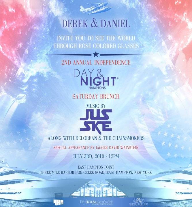 For all those urbanites flocking east to the Hamptons the only party to be at is Day and Night. Music by Jus Ske, Delorean and The Chainsmokers and even a special appearance by the one and only Jagger David Wainstein.