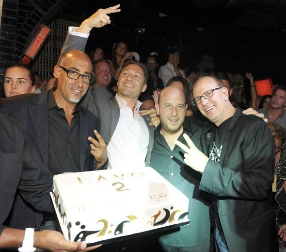The surprise of the night came after Lavo’s owners were presented with a cake commemorating the anniversary. LMFAO hopped on top of the banquette at their dance floor table and proceeded to thrill the packed club with an impromptu 20-minute set, spinning the crowd into a frenzy. Bottles of Cristal were paraded through the club to fuel the party as everyone toasted to an amazing two years.