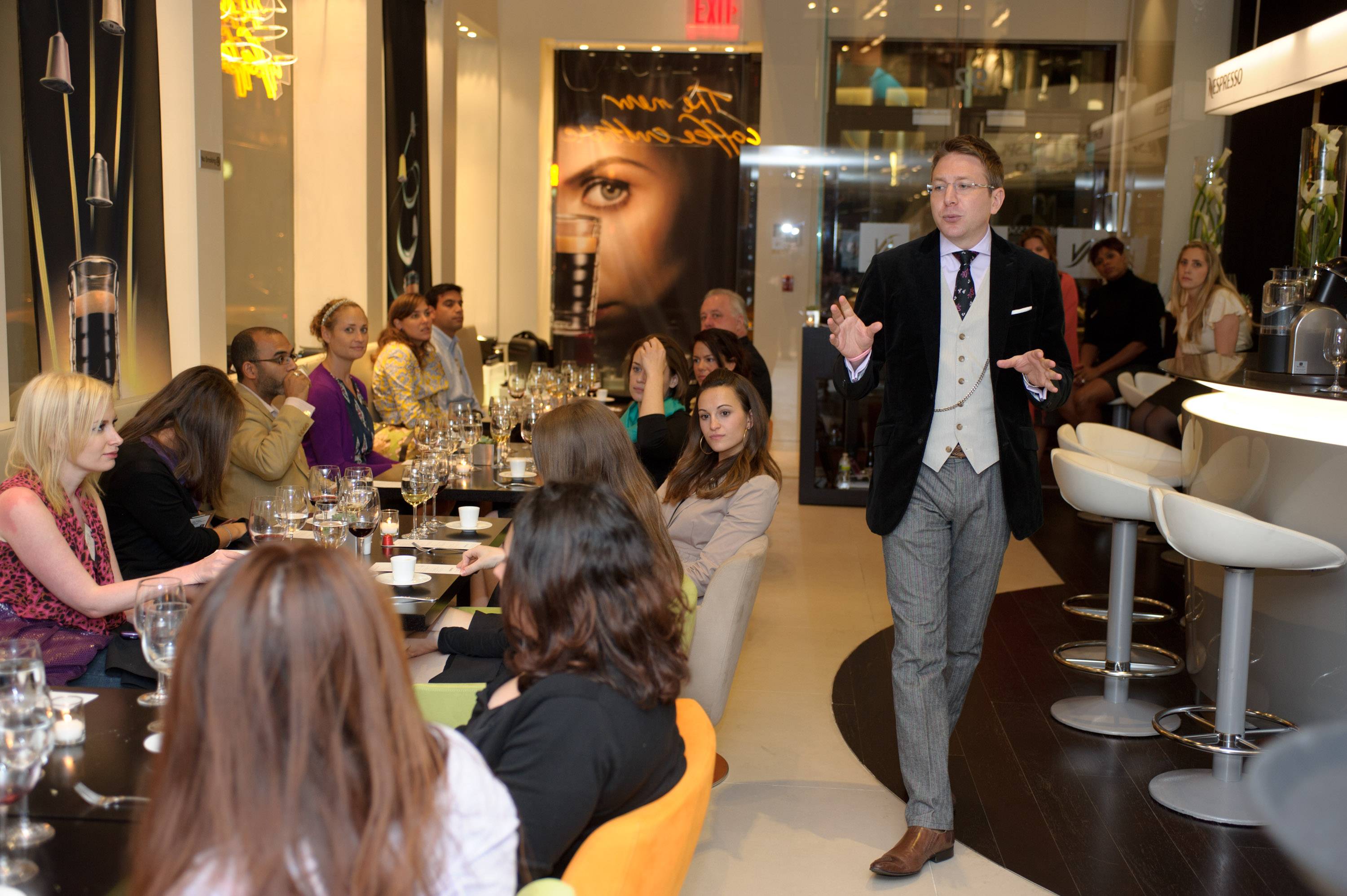 Last week, the new boutique coffee bar hosted an exclusive event for bloggers and of course, Haute Living was hot on the scene, though arriving fashionably late from the eco-luxury showcase. Bumping into Stephen Asprinio, from “Top Chef” Season 1, we swapped Batali and Demarchelier Eataly stories before settling down to taste Stephen’s eloquent pairings of wine, coffee with a three-course dinner.