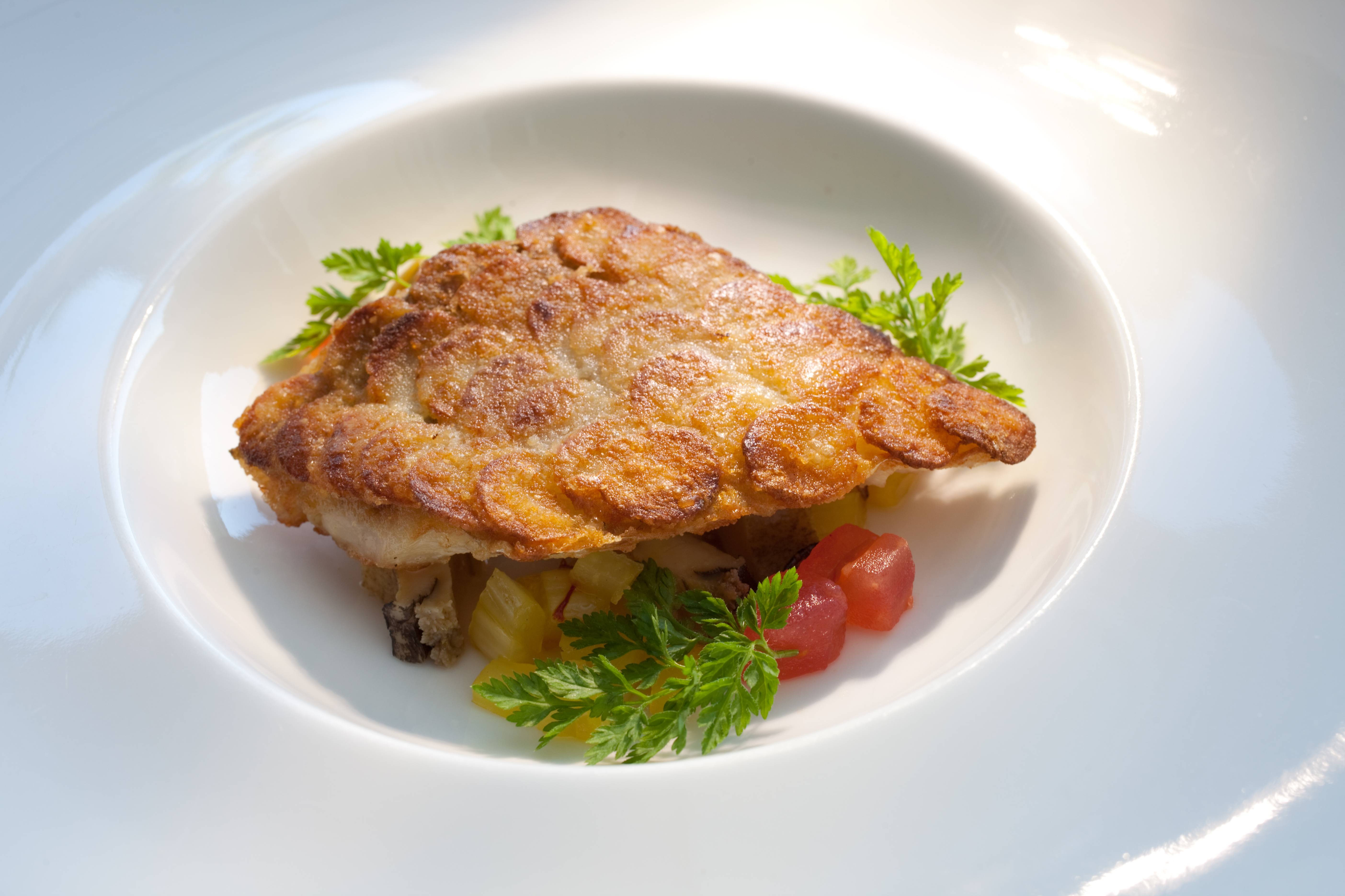 Orchids at the haute Halekulani Hotel serves up the Oriental style Onaga (the Hawaiian word for ruby or long tail snapper) as their signature fresh fish dish. Originally created in the ’80s to showcase the islands’ fresh local fish, chef de cuisine Darryl Fujita first crafted it to give a nod to Hawaii’s strong Asian influences. The result is a delectable one. Orchids’ traditional Chinese dish is steamed with grated ginger and finished with shoyu (soy sauce), sesame oil and sizzling peanut oil. Then, the flavorful fish dish is paired with a side of sauteed Chinese vegetables.