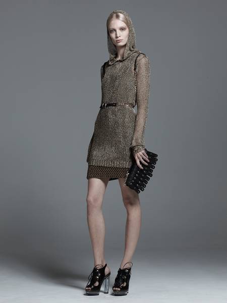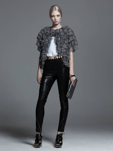 The Temperley London collection was appropriately entitled Guinevere, named after Lady Guinevere of the King Arthur legend. Many subtle medieval elements are used within each piece including steel-colored ensembles and even a hoodie that actually resembles chain mail. Likewise, the dresses feature elegant, feminine ruffles that would make even Sir Lancelot swoon. The modern edge comes with the leather leggings, chain suspenders and several styles featuring leopard prints. Safari-chic makes yet another appearance! The pieces effortlessly flow with one another, creating a rather fluid and harmonious collection overall.
