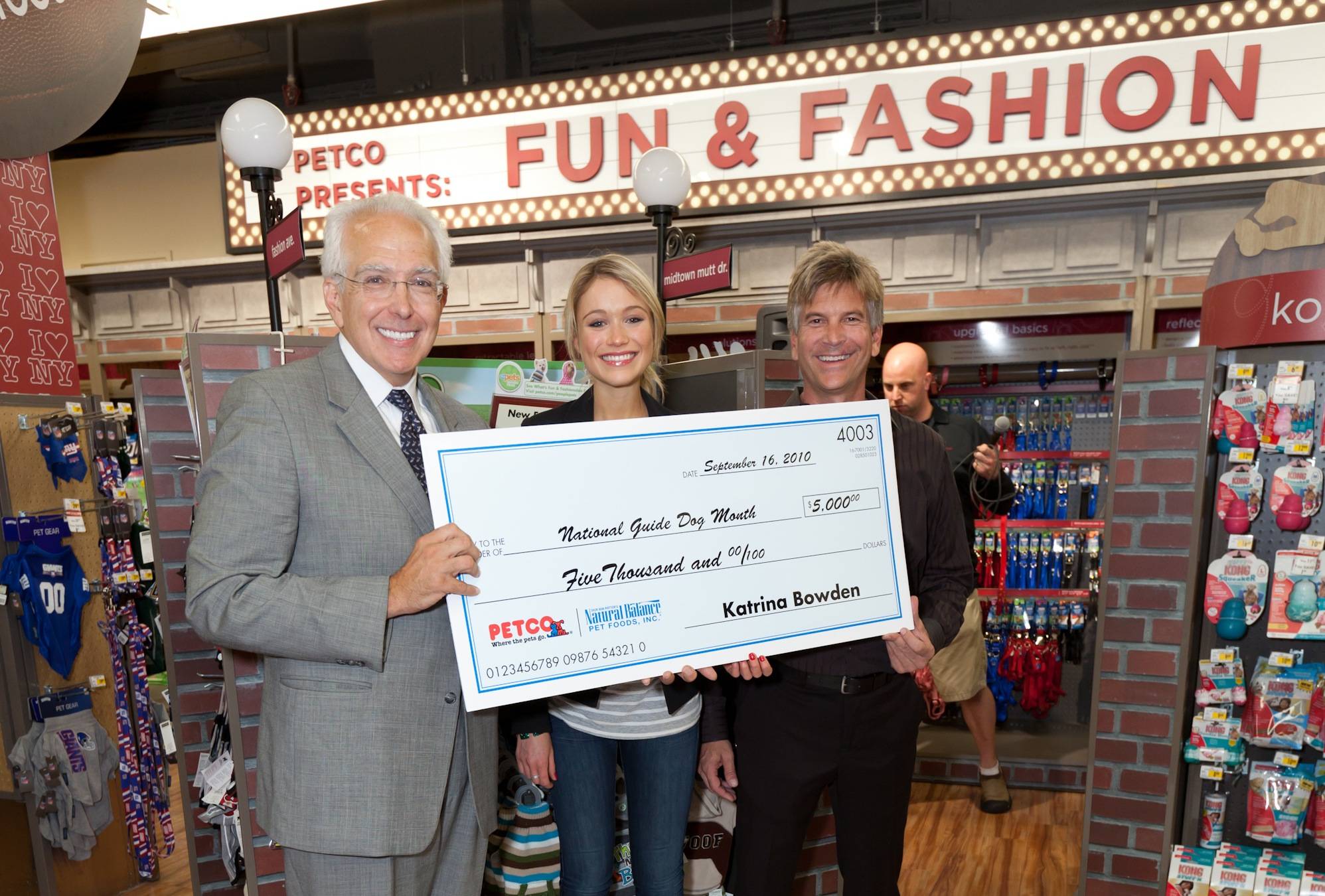 In addition to the fun & fashion at it’s flagship store, PETCO celebrated the evening raising funds for National Guide Dog Month. 30 Rock Actress Katrina Bowden presented a check for $5,000. With a goal of 1 Million Dollars, and only a few hundred thousand to go, I highly encourage you to check out http://www.petco.com/petco_Page_PC_nationalguidedog.aspx and find out ways you can participate.