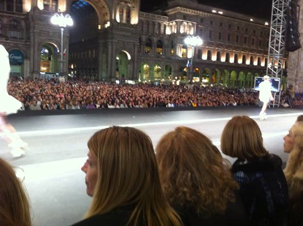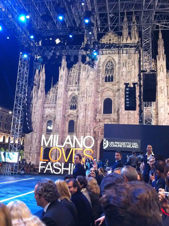 Today’s open-to-the-public runway show rounds out the week for the finalists who embark on promising careers using this experience as a springboard to catapult them decidedly forward. Taking place in Milano’s major square, Piazza Duomo, the presentation was well-attended, to say the least. One side was punctuated by hundreds of onlookers who stood eagerly to catch a glimpse of the fashions while the other boasted seating for the likes of Anna and Franca, Vogue’s Virginia Smith and Diane Von Furstenberg, who was seen chatting up Rosa Clandestino Silvia’s brother and business associate, Ernesto Argüello—not surprising, as we’re also particularly fond of Argüello’s collection which exudes a femininity and elegance frayed only by carefully selected contradicting elements. I have a soft spot for the well edited.