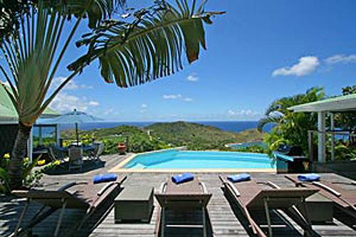This secluded 4 bedroom 4 bathroom villa is perched in the heights of Devé. It boasts three pools and panoramic views over Toiny and the sun as it rises. The main pavilion encompasses the kitchen, living and dining areas as well as the master bedroom with its en suite bath. La Danse du Soleil’s furnishings include lovely antiques from the Louisiana Empire period. An imported Mexican wood-burning kiln near the main infinity edge pool is just one of the property’s unique features. The second bedroom, also with bath en suite, is in a separate bungalow situated on the opposite side of the main pool. The additional bedrooms are in separate bungalows as well; each includes its own bath, kitchenette and a private plunge pool. Excellent rental history.