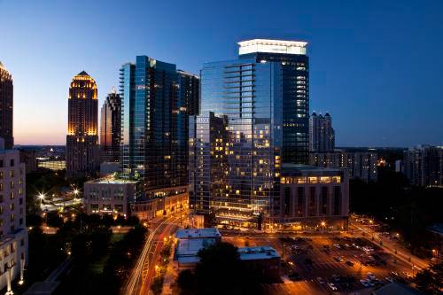 The Loews Atlanta Hotel is located at 1065 Peachtree St., on the corner of Peachtree St. and 11th St., Atlanta, Georgia, 30309 | 404.745.5000; www.loewshotels.com/en/Atlanta-Hotel.