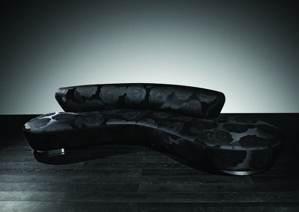 Serpentine sofa with repeating rose pattern, $16,215; Available at Luxury Living, Miami Design District. 305.438.1660