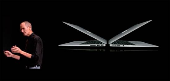 What Makes Him Haute Now: When Apple CEO Steve Jobs made his “Back to the Mac” presentation on Wednesday, one thing was made clear: good things come in small packages. Jobs introduced Apple Inc.’s lightest laptop ever by asking, “What would happen if a MacBook and an iPad hooked up?” Jobs shared a new version of its laptop, MacBook Air, which comes in two models, the 13.3-inch, $1,299 with a 128-gigabyte flash memory drive, and an 11.6-inch version, starting at $999, both already available. The 11-inch model has the height of the iPhone 4 at its thinnest part, and is thinner than any netbook currently in the market (with a screen two sizes smaller than the original MacBook Air). The new hyper-thin MacBook Air is not only the lightest in its class, it contains a full-size keyboard, two USB ports, a speedy SSD drive and a great graphics chip. It’s also the first Apple laptop to conform to the 16:9 aspect ratio.