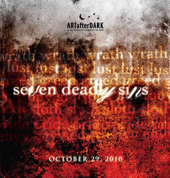 Art After Dark is the Honolulu Academy of Arts themed monthly art party and this Friday’s event marks the last of 2010. Because the beloved last-Friday fete is saying goodbye for a while, it’s time to indulge and fittingly so, since October’s theme is Seven Deadly Sins. Got a lusty mood? DJ Vegas Mike will be playing some tunes to get you in the mood at the Kinau Courtyard. On the pride side of the spectrum, enter the Best Costume contest in Luce Pavilion. There’s nothing like a woman scorned, so wrath will explore those deep-seated feelings with music by DJ Spikedelic. Want to make them swoon with envy? Get your body painted by Nicholas The Artist. Greedy much? Enter the Sin Gallery Hunt. The first 20 greedy guests to turn in their completed hunt forms will be rewarded for their sin. Prizes include certificates to Town, Mu’umu’u Heaven, a one-year subscription to Honolulu Magazine, and Art After Dark swag. Grand-prize winners will snag two tickets to Honolulu Magazine’s annual dining awards celebration on November 7. Feeling slothy instead? Get your fortune read by Helen Rauer in the Mediterranean Court. And, for the gluttonous, gorge yourself on gumbo, dirty rice, tostones, arroz con pollo and frijoles negro brought to you by local restaurant Town.