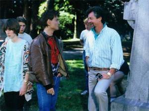 Johnny Depp with Stephen shooting an episode of 21 Jump Street.